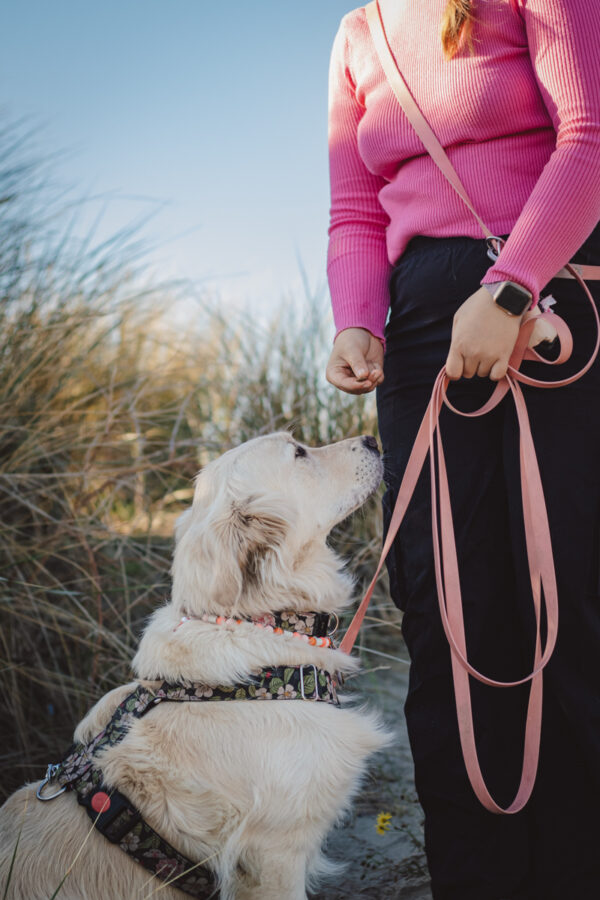 In eerste instantie zou je denken dat het gebruik van een korte lijn veiliger is. Maar wist je dat een korte lijn juist voor extra spanning zorgt? Die constante spanning en het gebrek aan bewegingsvrijheid maken dat een reactieve hond juist snéller explosief gedrag vertoont. Wandel met een lange lijn, zodat je hond voldoende bewegingsvrijheid krijgt en zelf keuzes kan maken. Je zult merken dat je hond meer ontspannen zal zijn en meer natuurlijk gedrag zal tonen.